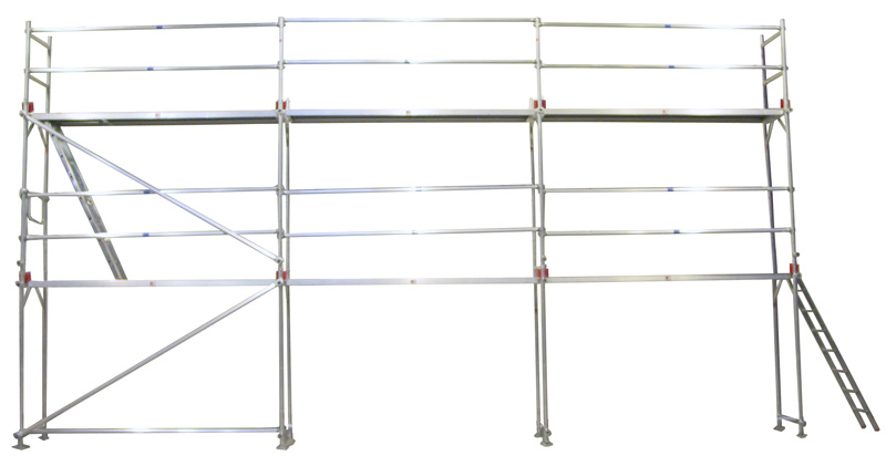 Dette sæt inkluderer ikke et gelænder, hvilket giver mulighed for at tilpasse stilladset yderligere efter behov.